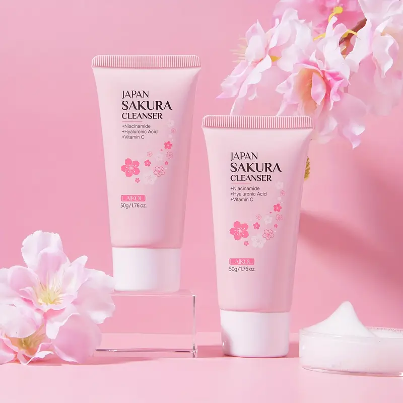 2pcs Sakura Cherry Blossom Foaming Cleanser – 50g Each | Deep Cleansing & Oil Control | Gentle, Formaldehyde-Free Formula with Sakura Extract | For All Skin Types | Men & Women | Sleek Floral Design